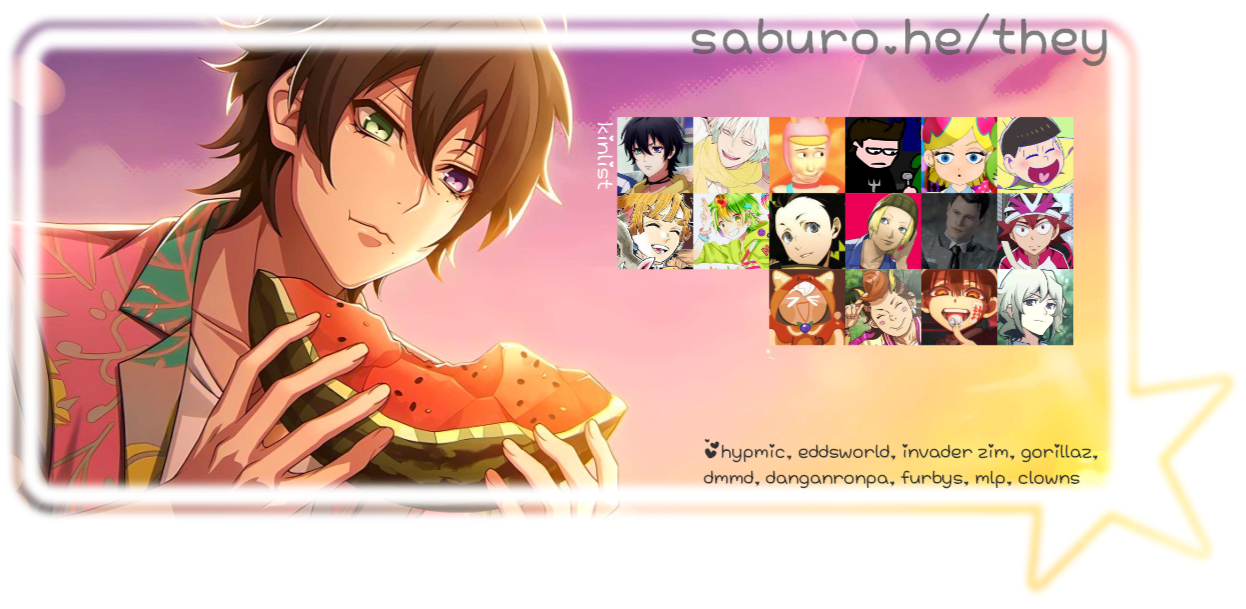Ikebukuro, Shinjuku & Osaka are my favorite divisions.MILGRAM, Alien Stage, Charisma House, Project Sekai // WxS, Enstars, FNF, One Piece, Trapeze, Popee the Performer, Dorohedoro, Durarara, Chainsaw Man, YowaPeda, Rick and Morty, Death Note, DMMd, Kirby, Kingdom Hearts, TWEWY, Gokuto Jihen, PaRappa, Danganronpa, Scream, Catherine, WatGBS, Grey Garden, Silent Hill, Resident Evil, MP100, Fire Emblem, All Saints Street, South Park, Eddsworld, Cookie Run, Gorillaz, Half-Life, Portal, Golden Kamuy, YuYu Hakusho, Persona, My Little Pony, Ace Attorney, Left 4 Dead, Speed Racer, Lupin iii, Blackjack, FLCL, Hunter x Hunter, Revolutionary Girl Utena, Pokemon Ranger, Yakuza, Metal Gear Solid, Care Bears, Garfield, Spy x Family, Animal Crossing, Sally Face, OFF, Smiling Friends, Aqua Teen Hunger Force, Happy Tree Friends... and more, probably.
